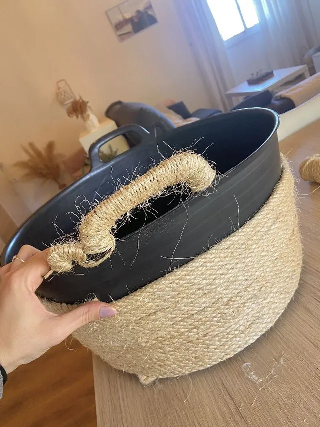 Las asas las hacemos con cordón más fino, de yute tambien.