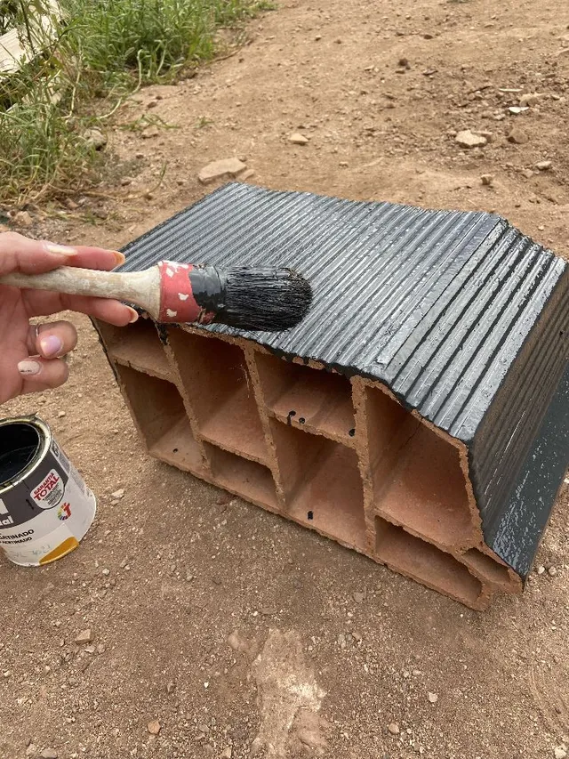En primer lugar he pintado un ladrillo con pintura negra para usar como soporte para los bastones de caramelo.