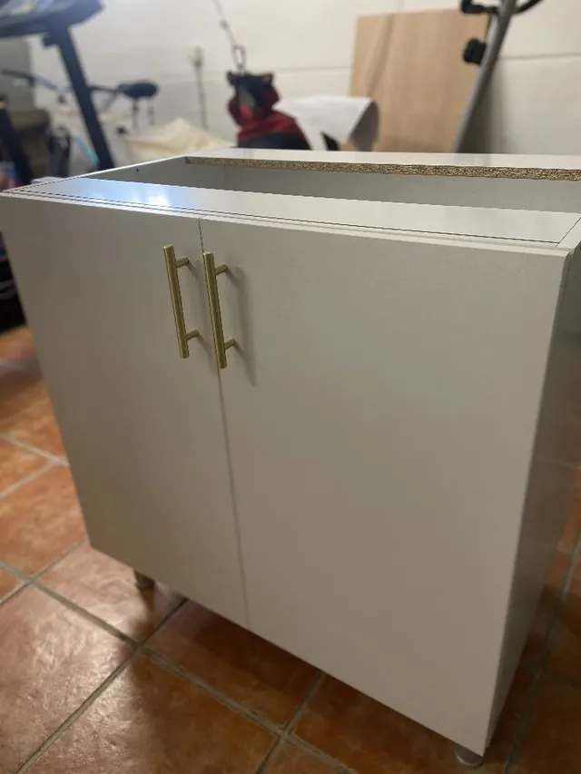 2- Para darle un toque más bonito y personal, cambiamos los tiradores por estos dorados. Que, como veréis más adelante, van a juego con el grifo de la pica.