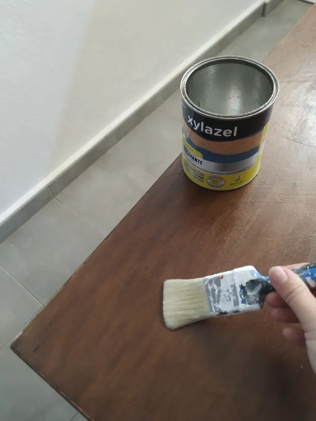 - Con una brocha, aplica una capa generosa de decapante sobre la superficie de la madera. Asegúrate de cubrir bien todas las áreas.