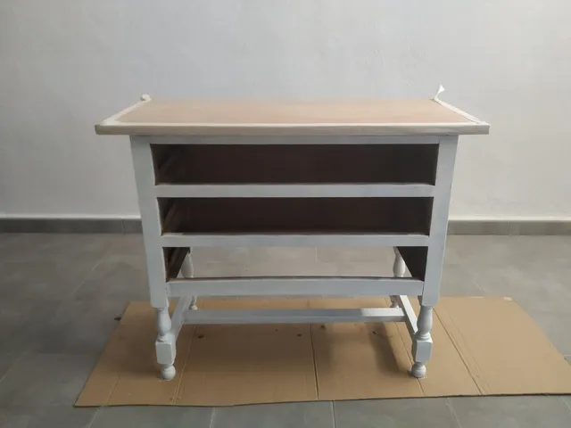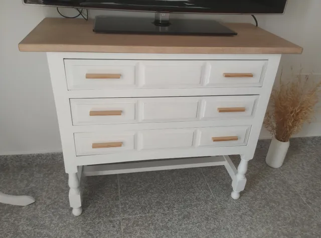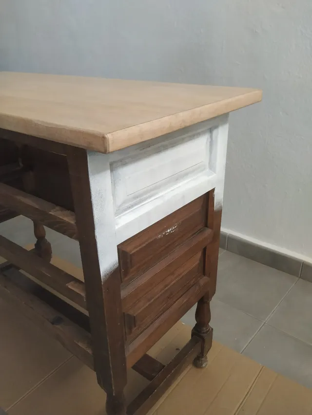 Si quieres un acabado más envejecido o desgastado, puedes lijar ligeramente los bordes del mueble después de pintar para darle un toque "vintage".