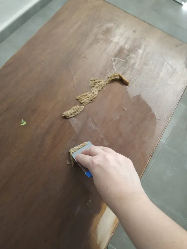- Usa una espátula o rasqueta para quitar la pintura ablandada. Hazlo con cuidado para no dañar la madera. Si quedan restos, puedes aplicar más decapante y repetir el proceso.