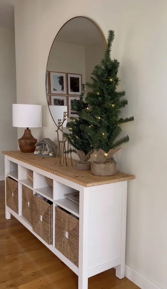 El recibidor lo he decorado de una manera mucho mas sencilla. Solo con los arbolitos y luces led y algo de deco que tenia en casa. Pero los arbolitos que no falten, para darle continuidad a la decoracion.