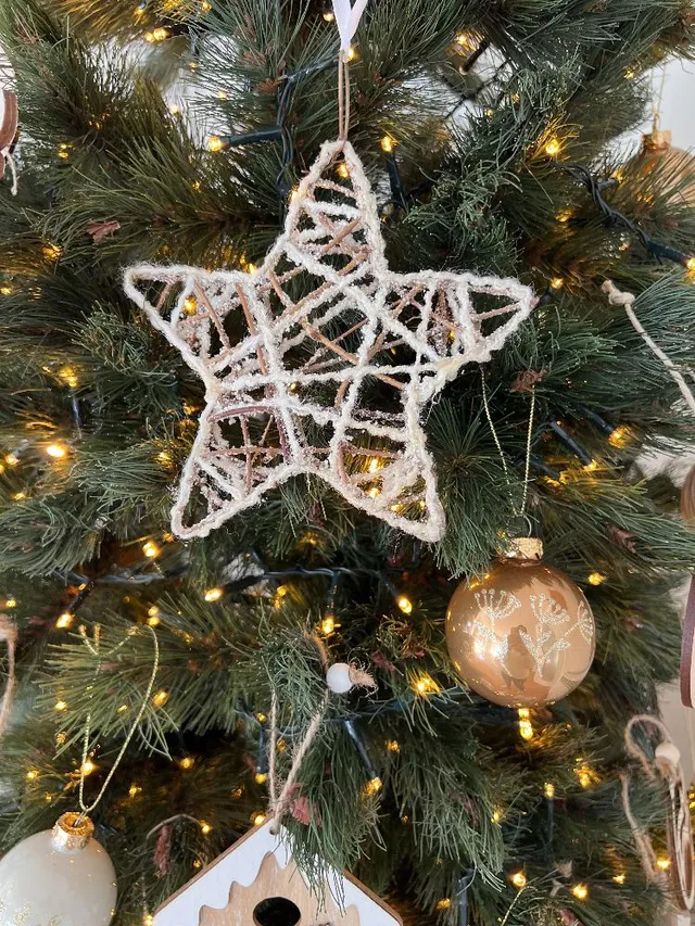 En el recibidor he puesto 2 arbolitos pequeños con maceta de yute. Uno de 60 cm y otro de 90 cm y les he puesto luces led a pilas. Simplemente con luces quedan fantasticos.