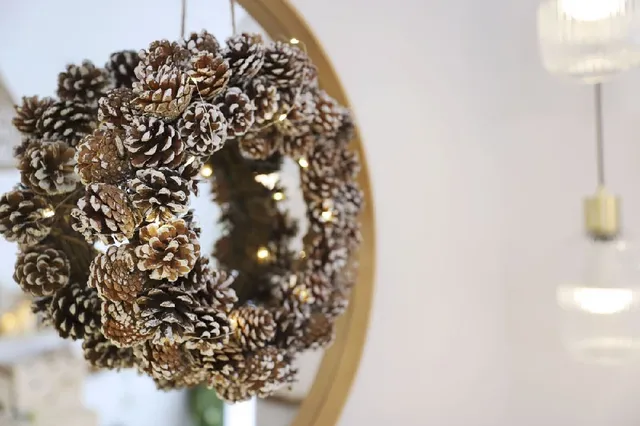Esta corona, le da un toque natural precioso y lleva las lucecitas incluidas, algo que le da un aspecto muy bonito y navideño.