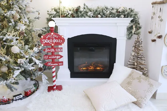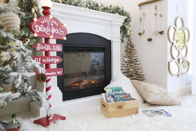 En nuestro caso, la chimenea ya la teníamos, pero quiero compartirla también, ya que es una maravilla para esta época del año. Se trata de una chimenea eléctrica que va enchufada a la corriente, es muy segura para los niños y calienta toda la estancia perfectamente.