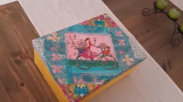 Una técnica DIY (haz lo tu mismo) que esta muy de moda es el decopage, es decorar cajas, bandejas, estanterias utilizando servillestas de papel con dibujos o papel de seda y cola blanca.