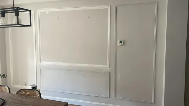 Pintamos tanto las molduras como la pared para igual todo el color.
