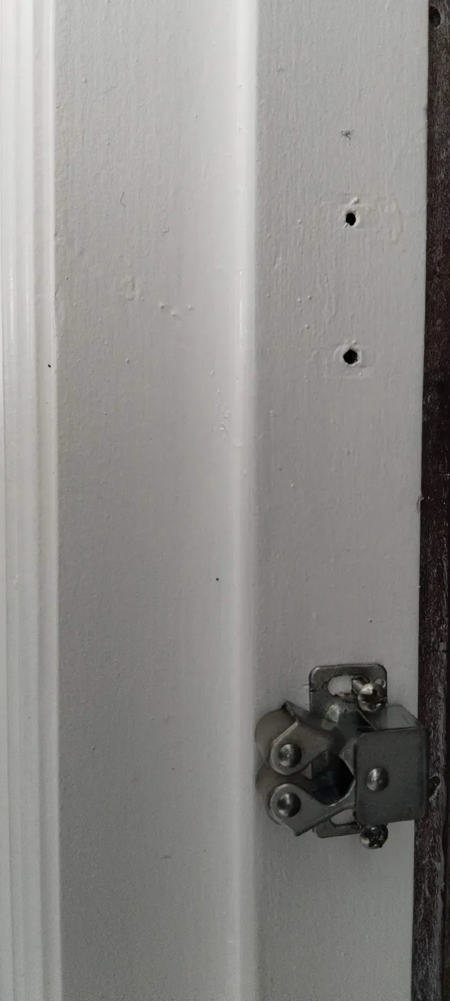 4° Una vez pintado el marco del armario y las puertas volví a montar todos los herrajes y coloqué las puertas en su sitio.