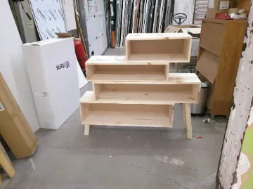 Seguidamente, pegamos con cola de madera, primero los estantes a uno de los lados y después al otro lado.