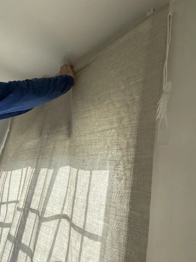 Tengo cortinas en casi toda la casa y en esta habitación, que está al lado del vestidor, no había ni una ni otra. Y cuando pasabas con menos ropa de la cuenta, corrías el riesgo de tener paparazzis (jajajaja).