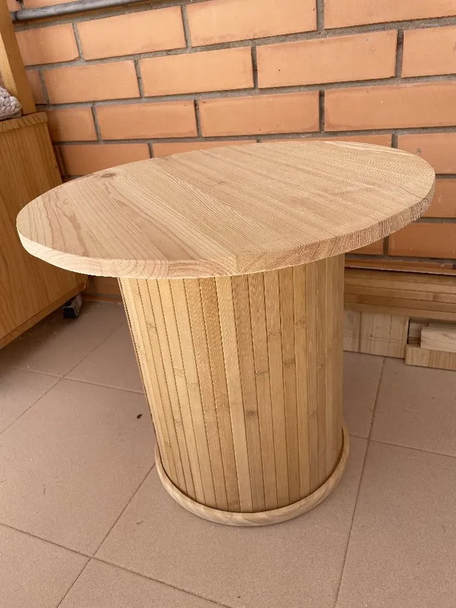 Quería una mesita auxiliar para el comedor y os quiero compartir este hack a partir de una esterilla de bambú y una tabla de cocina redonda. Además se necesitará una tabla de madera de pino para crear la estructura interior y la tapa de la mesa: