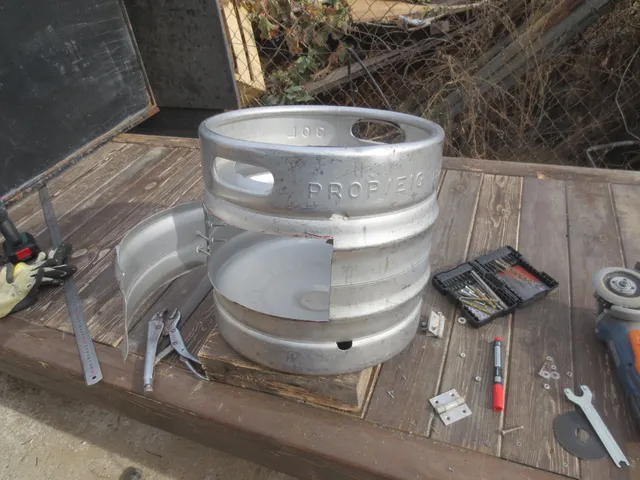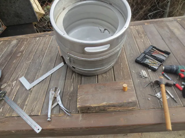 - 1 Bidón de cerveza de 30 litros, lo he comprado. Se puede conseguir en una chatarrería,..