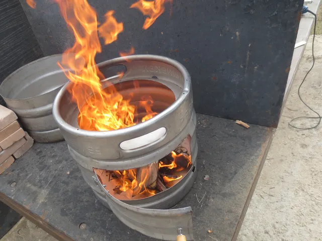 Un bidón de cerveza de 30 litros es la medida perfecta pues colocada encima de la encimera nos da la altura idónea para cocinar.