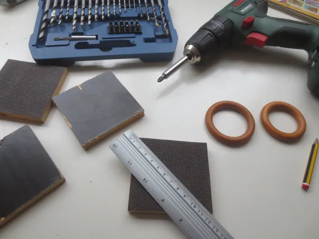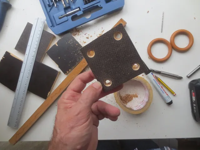 Un trozo de madera cuadrada 3 anillas de madera Un trozo de cuerda 2 bolas de madera