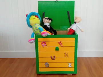 Trabajo está realizado con envases de cartón, silicona caliente, cola blanca y pinturas acrílicas,