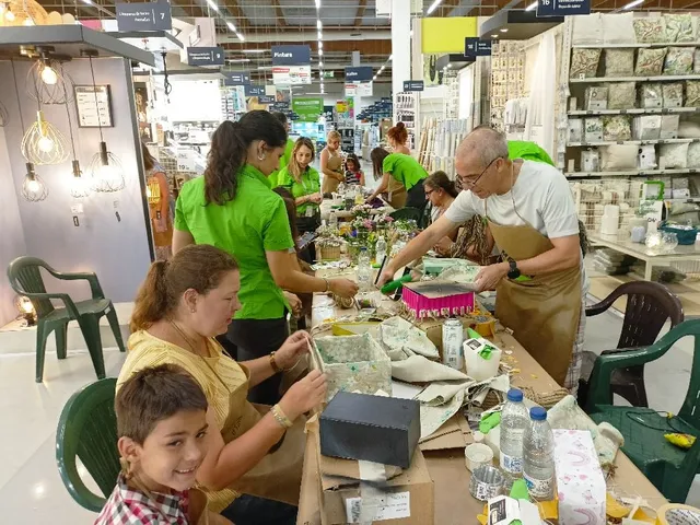 Agradecerles a todos sus enseñanzas y dedicación (Rafa en el taller infantil, Noelia en los cojines y un largo etcétera de compañeros) y, en particular a la cara visible del evento, nuestra compañera Esther por lo bien que lo hizo en la retrasmisión del Streaming. Pero sobre todo a @Teresa@HuelvaLeroyMerlin , que es la verdadera cara en la magnífica organización del evento que resultó tan bien.