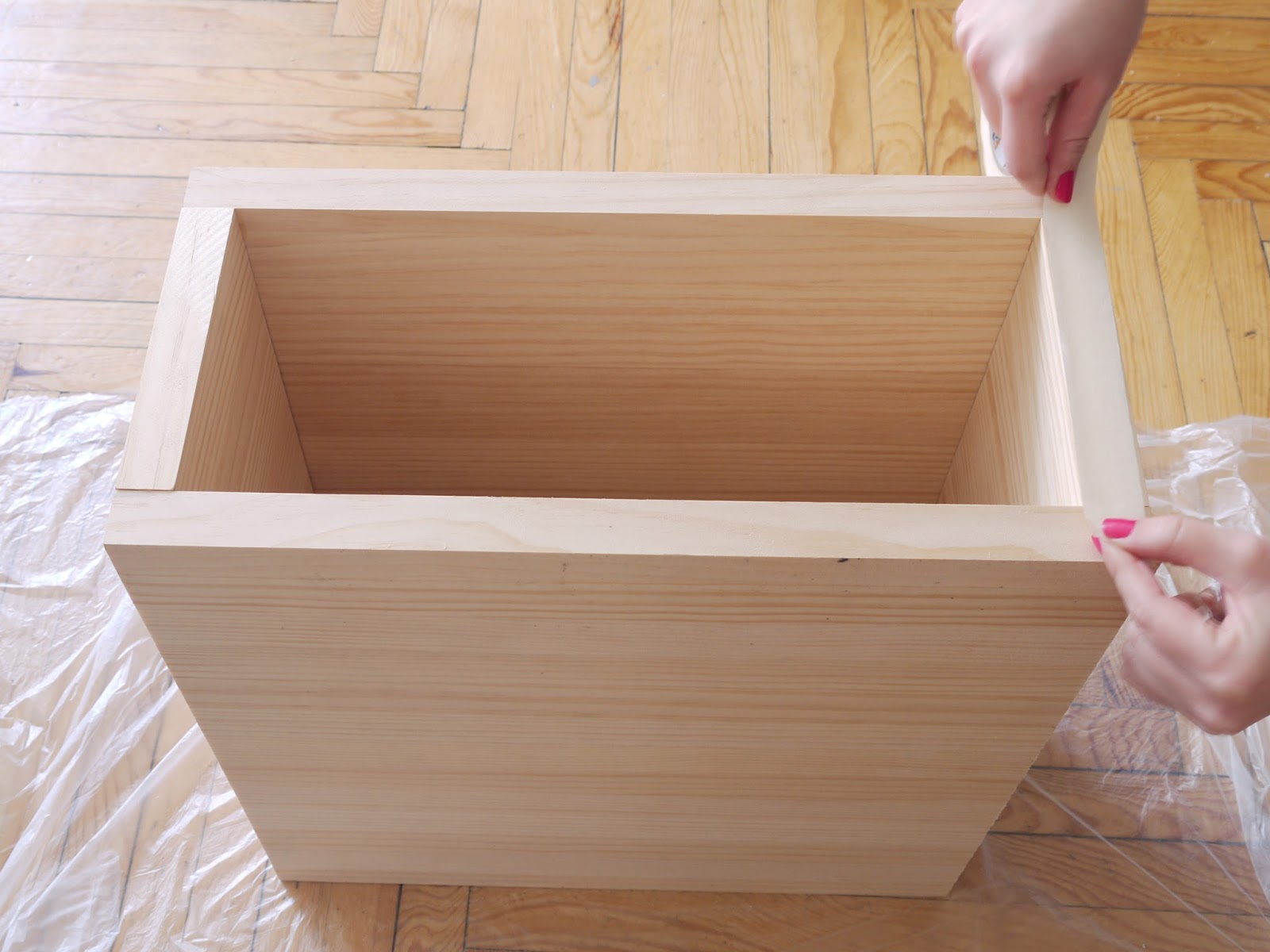 5. Protege el suelo con plástico de pintor y coloca cinta de carrocero en el canto de los tableros para que no se manchen.