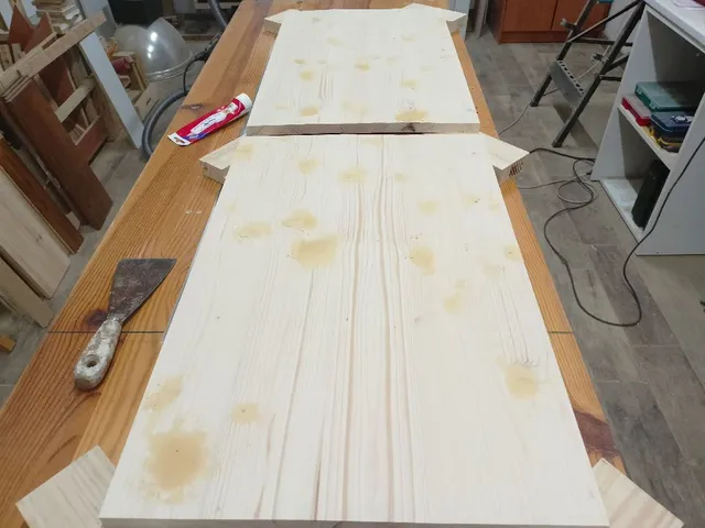Los tirafondos del estante superior los tapamos con unas pegatinas adhesivas en color pino.