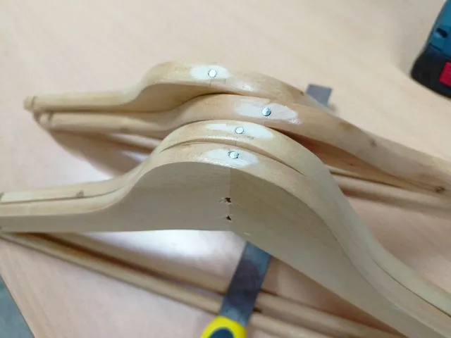 Ahora llegaba el turno de las perchas. Primeramente les repasamos el resto del gancho que había quedado con una lima plana para metal.