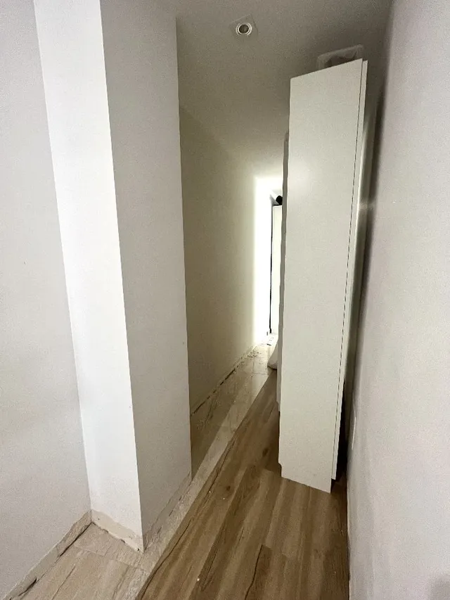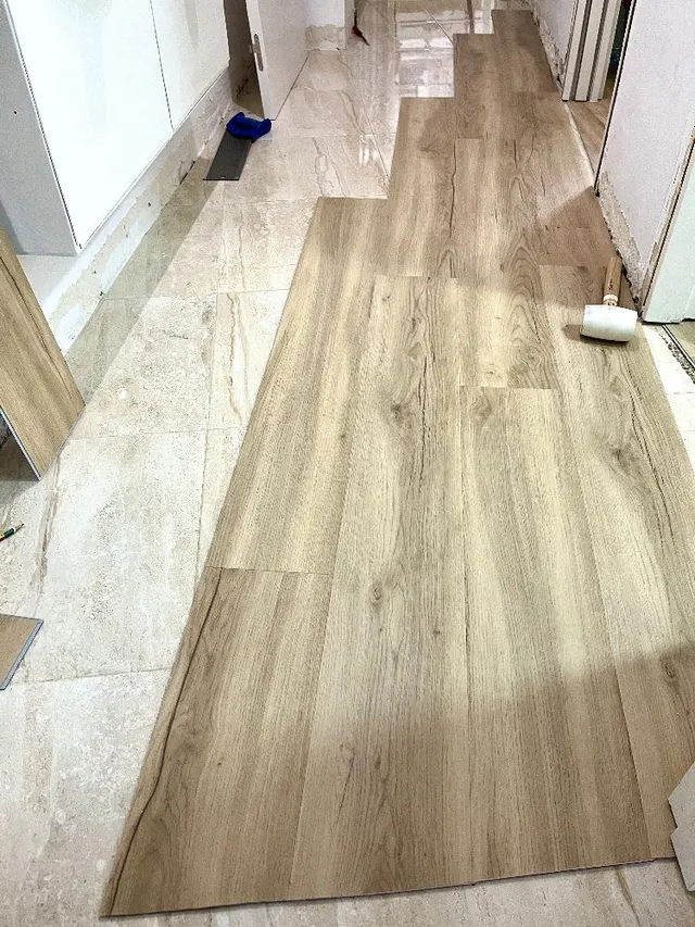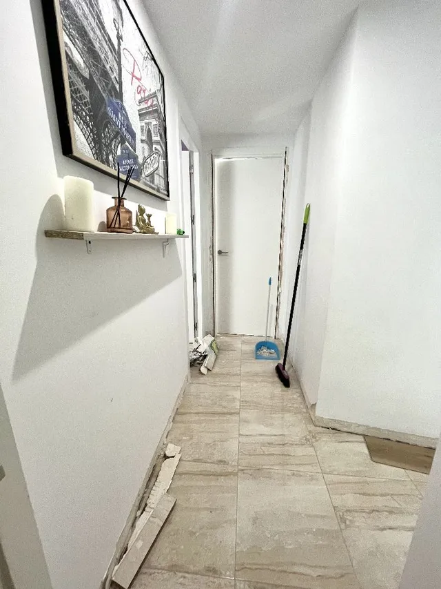 Al tener unos armarios en el pasillo tuvimos que moverlos hacia un lado y seguir con el suelo, cargados hasta arriba no los podíamos mover así como así a otra parte de la casa.