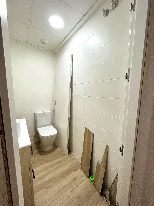 Esta "obra" la hemos hecho nosotros en casa (como todo lo que hacemos de reformas) y aunque siempre hay cosas que hago yo, en esta ocasión solo he quitado algunos trozos de rodapié porque se levantaba se ponía a quitarlo y cuando iba quedaba poco.