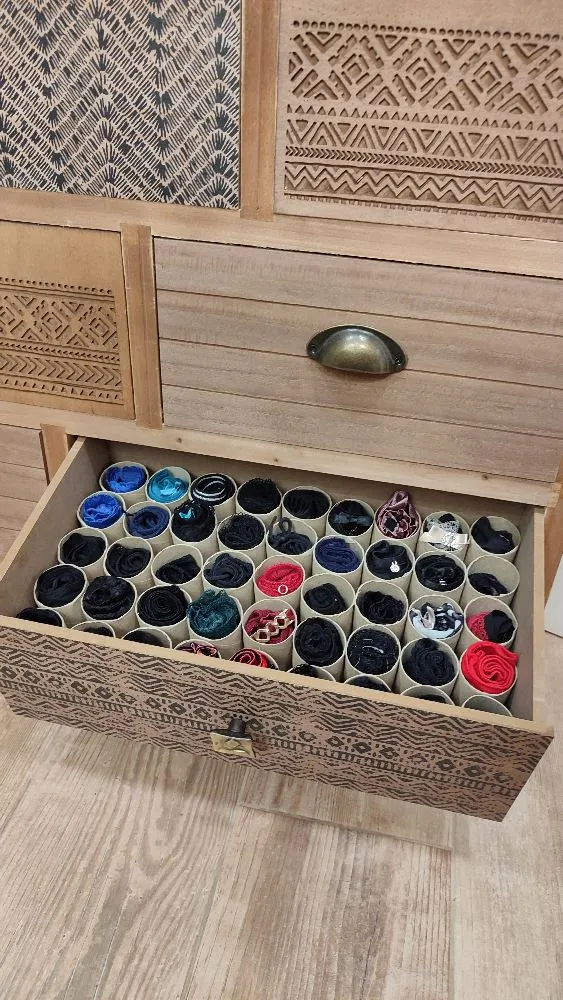 Este es un TIP muy facilito que os traigo hoy. Se trata de reciclar los rollos del papel de WC para luego usarlos para ordenar nuestras prendas más pequeñitas de ropa interior o calcetines. Da mucha paz visual verlo todo así y no un revoltillo en un cajón, hace años que lo uso y es práctico y gratis. :)