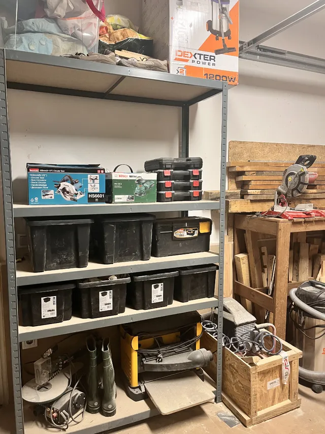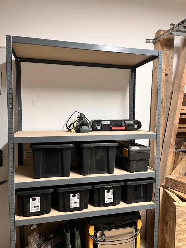 Una vez que lo tenia todo retirado me puse a medir que espacio tenia, que por cierto una estantería de 100 cm me entraba de sobra por eso me fui al Leroy Merlin a buscar que estanterías tenia y vi una que me cuadraba bastante bien y lo mas importante que aguantaba bastante peso que para alguna herramientas que tengo eso es super importante. Una vez que lo tenia solo era echar un par de horas y montarlo