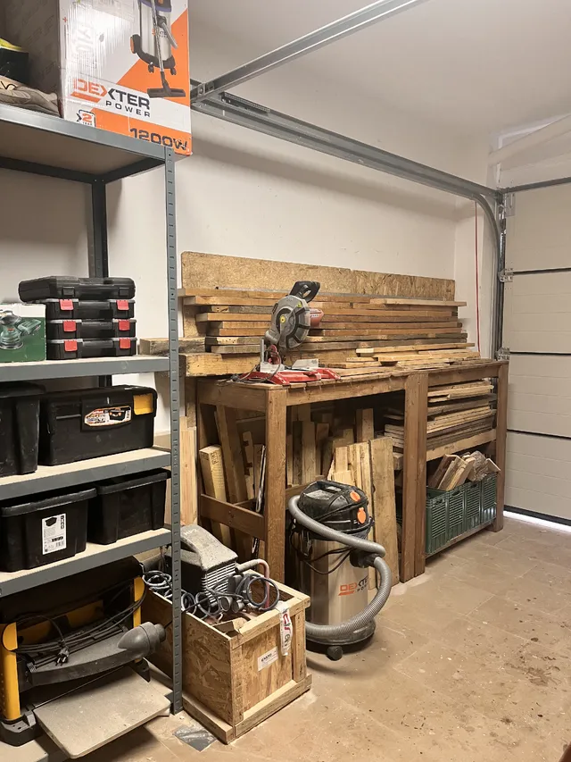Ya tenia ese espacio limpio ahora tocaba colocar unas mesas que hice y volver a dejar toda la madera asi tenia todo organizado un abrazo adiosss