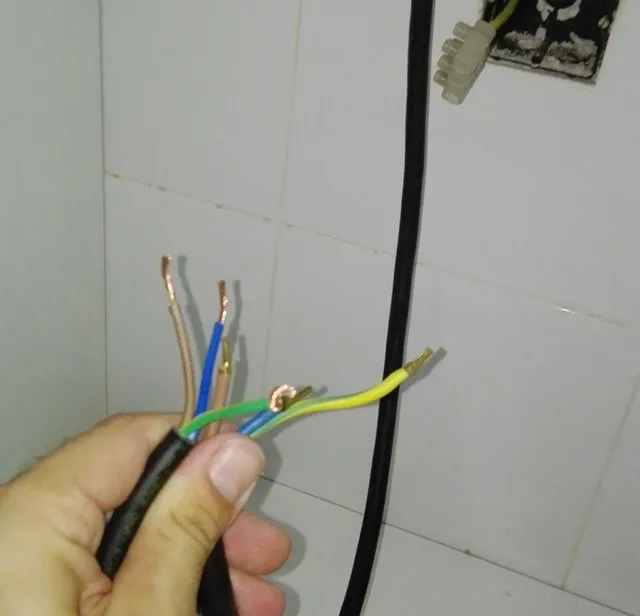 4. Procedemos a conectar la encimera y el horno al enchufe. El cable de toma de tierra es verde o amarillo, el de fase azul y el neutro es marrón.