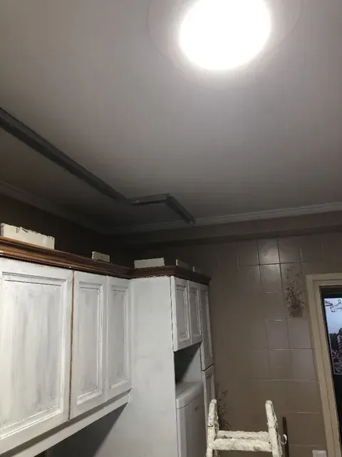 El espacio que se queda entre los muebles de la cocina y el techo, que no sirve mas que para acumular grasa y polvo, he decidido taparlo con pladur.