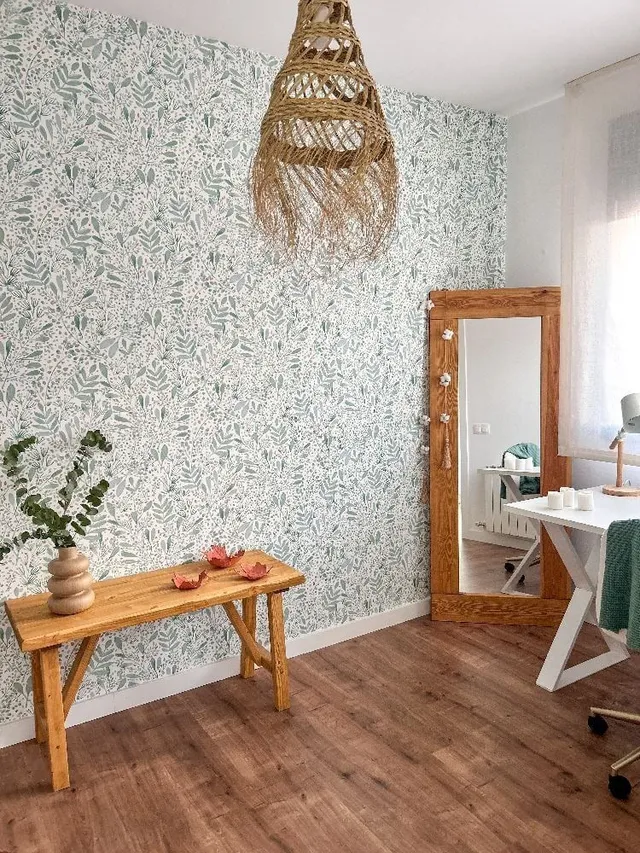 Una vez eliminado y asegurandonos que esta la pared limpia , procederemos a poner el nuevo papel. Primero tendremos que medir el alto de la pared, para poder cortar el papel a nuestra medida. Se cortará con cuter.