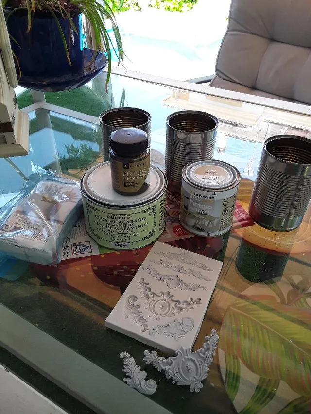 6.y como botes, he usado latas de la comida de mis gatos , pintar