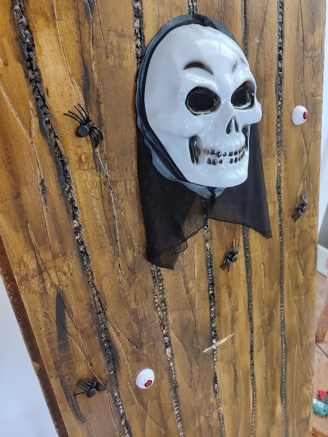 He usado la misma técnica que hice con el ataud, rayas negras, barniz roble y algunos adornos.