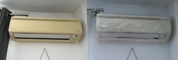 RECOMENDACIÓN: si aplicamos el producto a la carcasa del aire acondicionado sin estar colgada en la pared y una vez lo cubramos con film lo ponemos al sol, el resultado será mucho más efectivo. Yo no pude bajar la carcasa porque al ser tan antiguo, no encontramos la manera de retirarla y no queríamos estropear al aire.