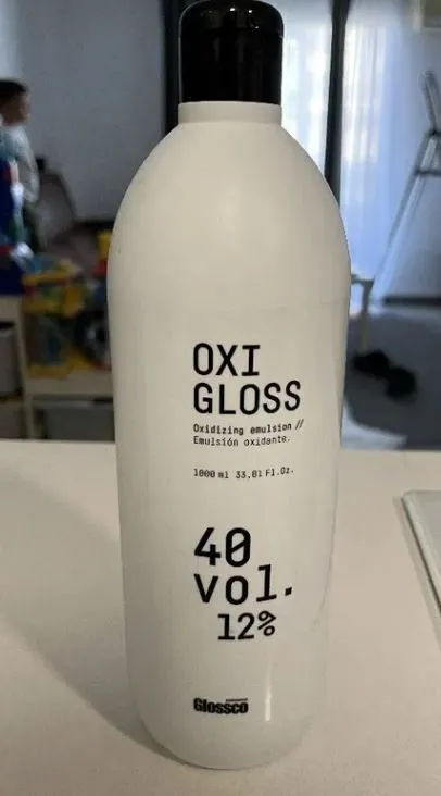 Agua oxigenada de peluquería en crema (mínimo 40 volúmenes. Esta la compré por Amazon