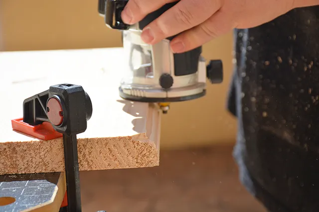 Hemos querido colocar en la parte superior una tapa de madera sin tratar, pero para mejorar el acabado hemos usado una fresadora.