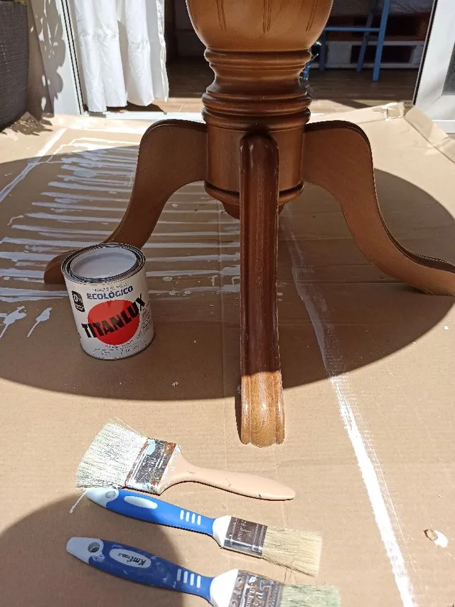 Las patas tan solo pasé la lija de manera suave para abrir el poro y poder pintar en blanco, usé la pintura Titanlux que siempre son buenos resultados.