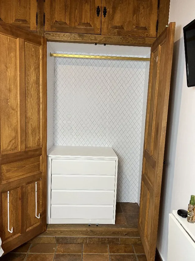 Hoy os comparto un proyecto que he llevado a cabo para renovar un armario. Como veis en la imagen era oscuro por dentro y no hay cajones. El polvo y el desorden estaban siempre presentes.