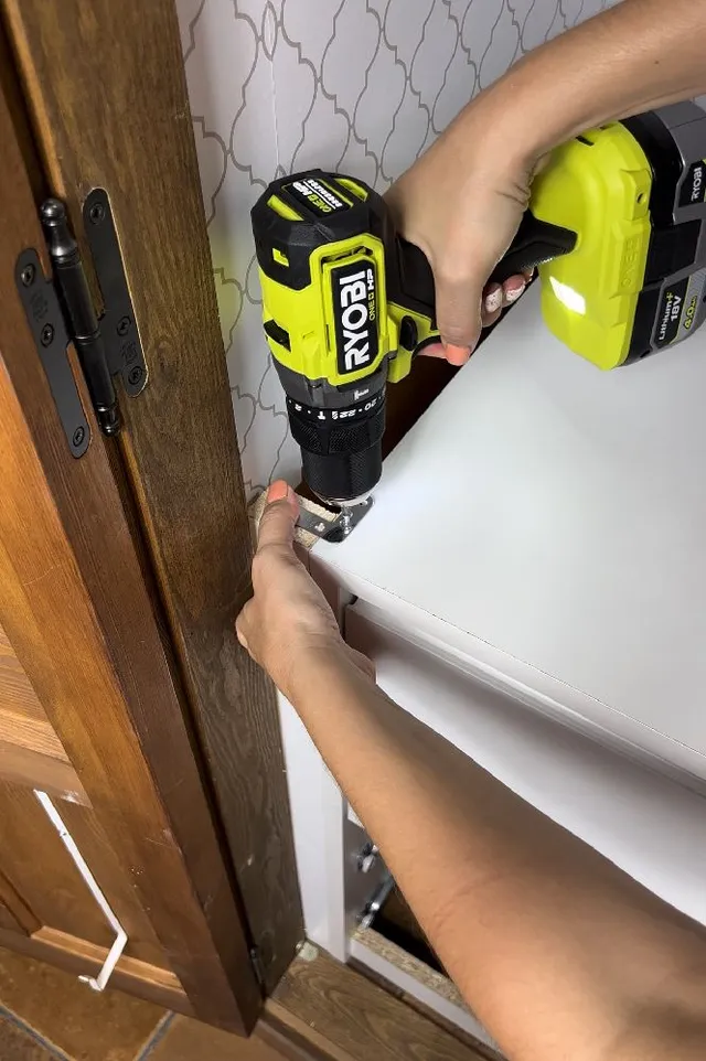La cajonera no debe ir totalmente pegada al lateral para que los cajones puedan abrir bien y no choquen en la puerta. Añadí un liston de 4 cm y lo atornillé a la cajonera.