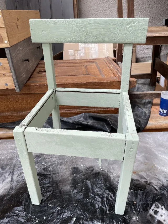La vieja estructura la pinté con pintura a la tiza tras lijarla.