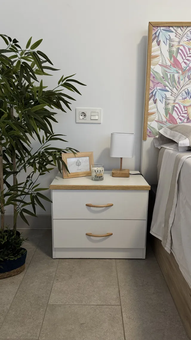 📸 3. Renueva las mesitas de noche: El último toque consiste en cambiar los tiradores de las mesitas de noche y añadir una pequeña pieza de madera a juego con el cabecero. Esto unificará la estética y le dará un toque más armónico.