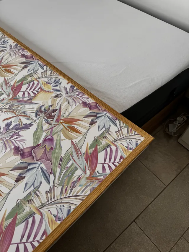 📸 1. Elige y coloca el papel pintado: El primer paso es seleccionar un papel pintado que aporte personalidad y estilo a tu dormitorio. Nosotros optamos por un diseño fresco y elegante que combina a la perfección con la decoración. Aplica el papel en el cabecero de la cama. En nuestro caso ha sido un vinílico y la verdad es que me ha resultado muy cómodo trabajarlo.