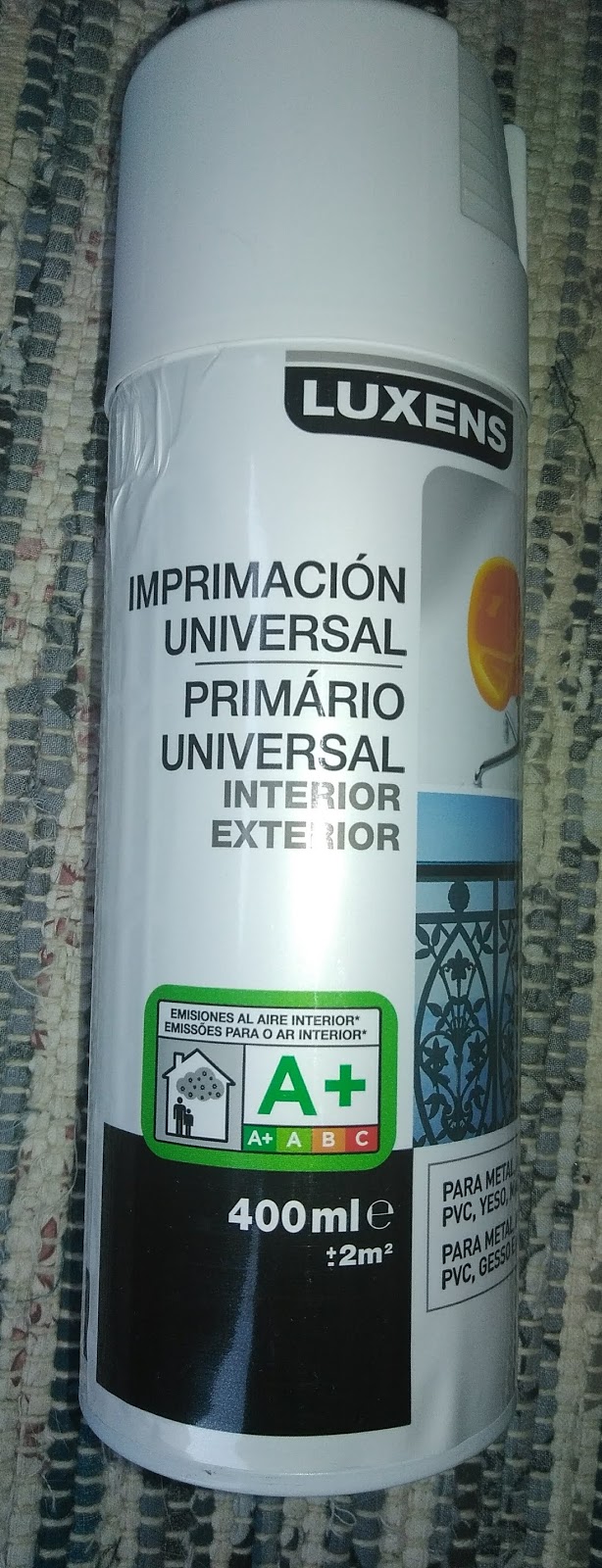 Como ya sabéis, primero y como regla esencial, hay que aplicar imprimación, para que la pintura que elijamos con posterioridad se adhiera de forma correcta, y no se desprenda con el tiempo. En este caso empleamos aerosoles, ya que con el diseño abarrocado, difícilmente podíamos utilizar rodillo y pincel.