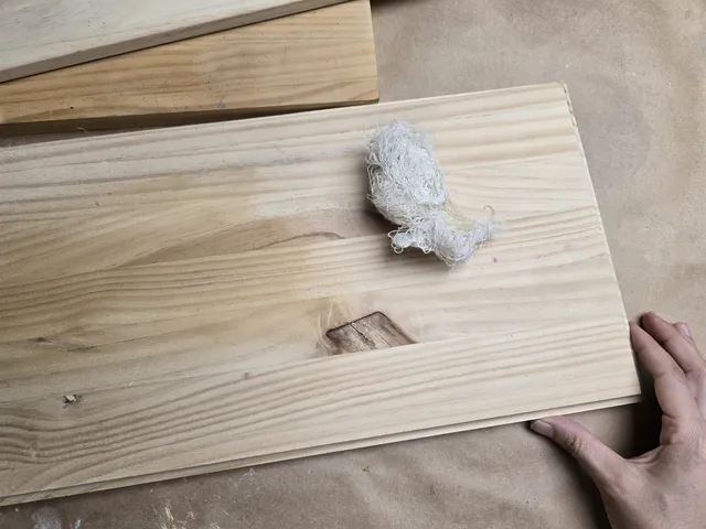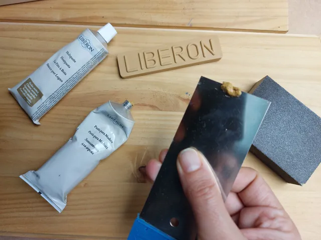 Lo primero que tienes que hacer cuando vayas a teñir la madera es preprar bien la superficie. Si ves que tiene agujeros o grietas, puedes rellernaslos con masilla: