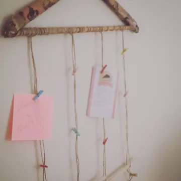 Ya tenemos nuestro colgador de notas o fotos DIY hecho con una percha. Espero que os haya gustado.