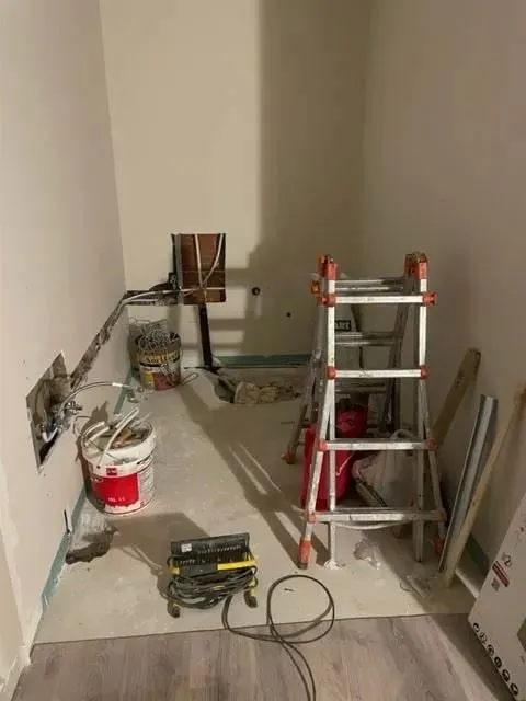 El aseo va quedando muy bien y en él logré crear un espacio para lavadora y almacenaje.