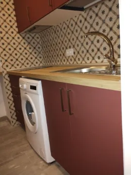 Este proyecto es mi apartamento vacacional, quería darle un contraste con un color rojizo para la cocina, y me decanté por elegir la cocina modelo Atenas y el color teja para el mobiliario con interiores blancos. Me encantan los mosaicos, por lo que opté por colocarle en toda la parte U de la cocina el mosaico con un toque color teja en el dibujo y una encimera acabado madera para que contrastara con el mobiliario y el mosaico elegido.