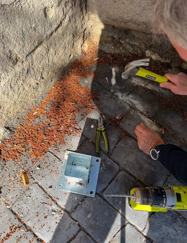 He puesto la base para poder atornillar las vigas, las he taladrado al hormigon.