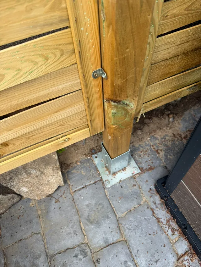 Todos los paneles los hemos atornillado a los postes con 4 escuadras a cada lado.